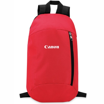 "Backpack in 600D polyester with zippered outside pocket and for comfort a padded back section in 210D polyester. Dimensions: 22x10x39cm. Marking: imprint PANTONE color for red backpack: 200c"