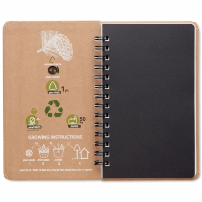 Pine tree GROWNOTEBOOK . Record your thoughts and give a tree back to the Earth with this sustainably harvested paper notebook. You can help to save our planet by planting a pine tree which will grow approx. 30 cm a year. Hard cover. 144 lined pages (72 sheets). Twin wire. Contains pine tree seeds (Pinus Nigra). Made in EU. Imprint on the cover. Notebook Dimensions: 14 x 21.2 x 1.5
