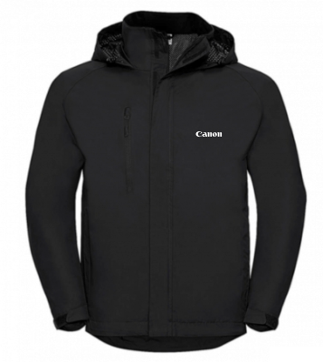 Zip up softshell Jacket with embroidered white Canon logo on chest. Highly water resistant and windproof, versatile and good looking it performs at every level. 3-layer softshell fabric with breathable membrane and bonded microfleece lining, water resistant to 5000mm.